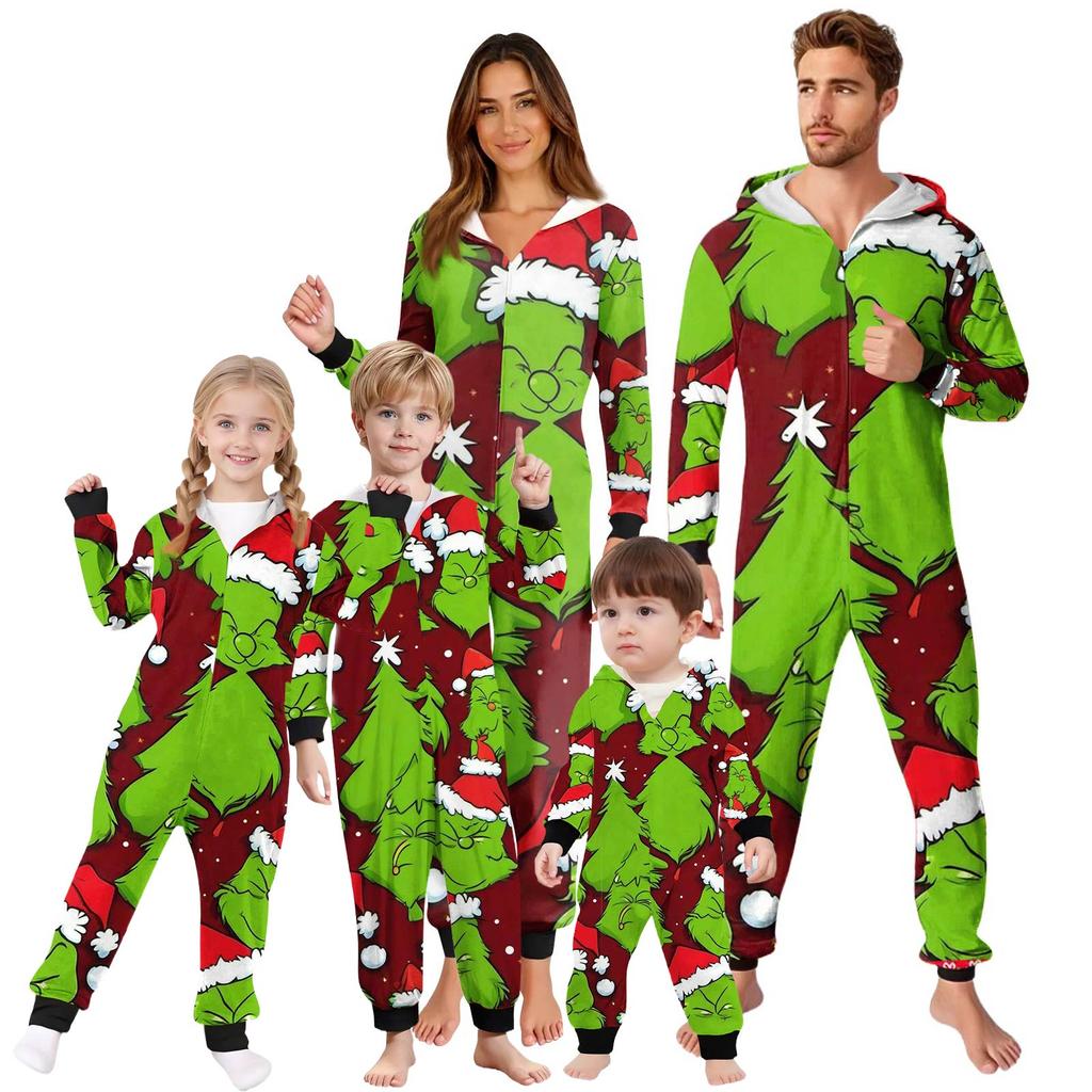 Rodzic-Świąteczny Nadruk Rodzic-Dziecko Kaptur Zapinany na Zamek Jednoczęściowy Domowy
