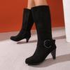 Autumn and winter boots, new mid-knee boots, suede high-heeled size 40-43 belt buckle short boots