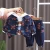 Jesienna Moda Dziecięca Smażona Ulica Wiosna i Jesień Pełny Nadruk Niedźwiedzia Denimowy Garnitur z Kapturem Modny Chłopięcy Garnitur Trzyczęściowy z Długim Rękawem