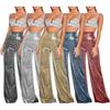 Damskie seksowne spodnie palazzo z wysokim stanem i szerokimi nogawkami, metaliczny brokat, dzwony, spodnie na imprezę rave