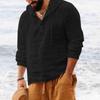 Męskie koszule z kapturem jednokolorowe bluzki z długim rękawem Casual guziki bawełniana pościel Vintage letnie koszule plażowe