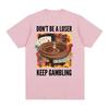 Nie bądź przegranym, kontynuuj hazard. Unisexowa koszulka z memem. Koszulki graficzne z ruletką i pokerem dla mężczyzn. Koszulka damska vintage oversize