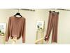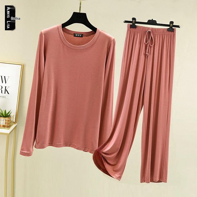Doświadcz najwyższego komfortu dzięki temu damskiemu jesiennemu zestawowi piżamowemu, składającemu się z bluzki z długim rękawem i spodni z szerokimi nogawkami, uszytych z luksusowej bawełny modalnej.. Miękka i oddychająca tkanina jest idealna na chłodniejsze miesiące, zapewniając zarówno ciepło, jak i styl na przytulny sen lub relaksujący dzień w domu.. Długie rękawy i nogawki o szerokim kroju zapewniają swobodny i elegancki fason, gwarantując, że będziesz wyglądać tak dobrze, jak się czujesz.. Idealne na spokojny sen lub stylowy relaks.