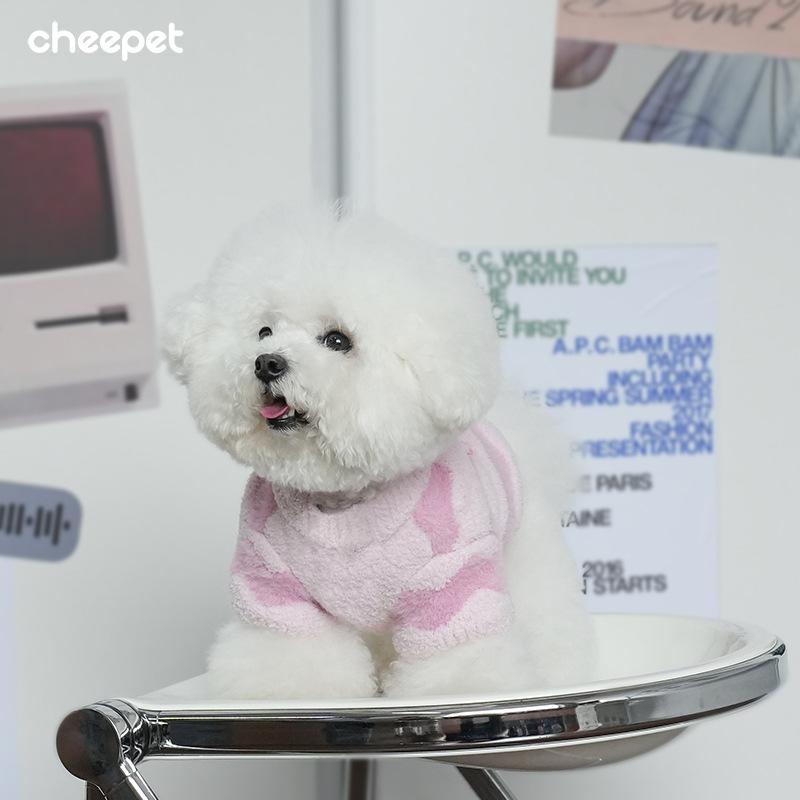 Pet clothing autumn and winter water ripple half-edge fleece pullover knitted sweater two legs three-dimensional embroidery warm dog sweater