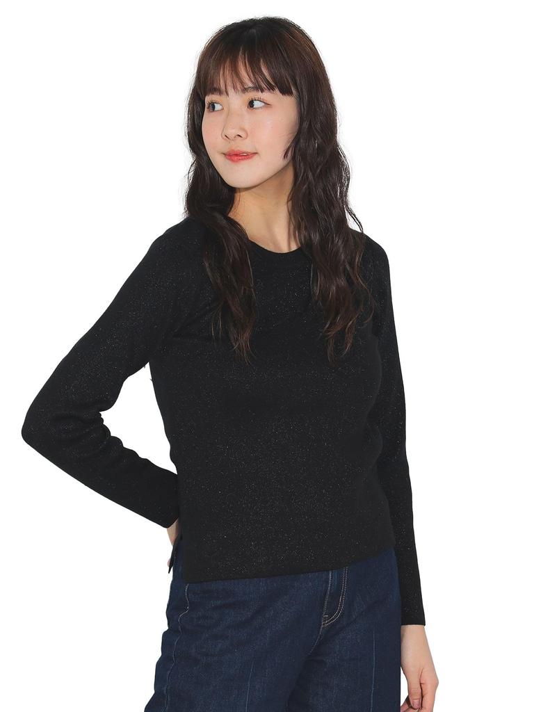 This pullover knit is dotted with glitter, a trend this season, giving it a feminine and glamorous look. The simple design makes it easy to coordinate with both work and casual wear, making it a recommended item to add to your wardrobe.