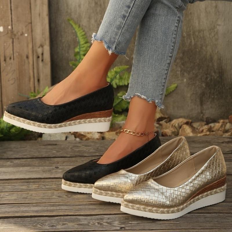 Large size new woven hemp rope sponge cake bottom shallow mouth breathable pointed women's single shoes