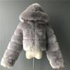 Short hooded jacket imitation fox fur long-sleeved fur splicing autumn and winter new thermal top