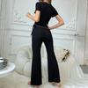 2025 Damski Zestaw Piżamowy Plus Size w Jednolitym Kolorze z Wycięciami - Krótki Rękaw i Szorty