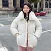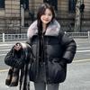 Krótka kurtka puchowa bawełniana damska zimowa z dużym futrzanym kołnierzem luźna klapowana kurtka typu chlebak