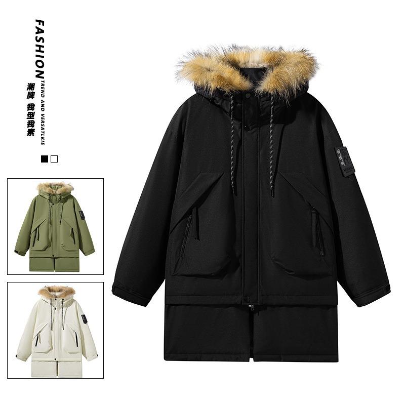 Winter big pocket fur collar hooded down jacket men's tide brand thickened 90 down hem removable thickened high quality men