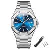 Męski modny zegarek biznesowy NIBOSI posiada metalowy pasek, casualowy wyświetlacz daty, luminescencyjną tarczę i wysokiej klasy design analogowy, co czyni go poszukiwanym i bardzo pożądanym zegarkiem luksusowym.. Ten luksusowy zegarek męski charakteryzuje się wzornictwem ze stali nierdzewnej o charakterze biznesowym i wodoodpornością.. Jego cechy to automatyczny kalendarz, srebrny lub złoty pasek oraz stylowa, polerowana, fazowana okrągła koperta dla łatwego noszenia.. Ten wodoszczelny zegarek męski ze stali nierdzewnej w kolorze złotym i srebrnym posiada wysokiej jakości, antyrefleksyjne, trwale powlekane szkiełko chroniące przed zarysowaniami i uszkodzeniami.. Ten męski wodoodporny zegarek z datownikiem i metalową bransoletą jest wodoodporny do 30m do codziennego użytku, nawet po umyciu rąk w deszczu.. Nie nadaje się do aktywności podwodnych. Uwaga: Nie naciskaj żadnych przycisków pod wodą. Nie nadaje się do pływania i kąpieli.. Ten męski zegarek z metalową bransoletą ze stali nierdzewnej w kolorze srebrnym lub złotym stanowi luksusowy prezent.. Posiada składane zapięcie z ukrytym podwójnym zapięciem na przycisk.. Bransoletka ma regulowany rozmiar i dostępne jest narzędzie do bransoletek.