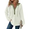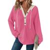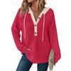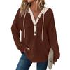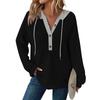 Damska bluza z długim rękawem i ściągaczem w blokach kolorów, z kapturem i guzikami, z dekoltem w serek, w swobodnym stylu