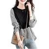 ZANZEA Damska codzienna bluzka z okrągłym dekoltem i długim rękawem w kratę