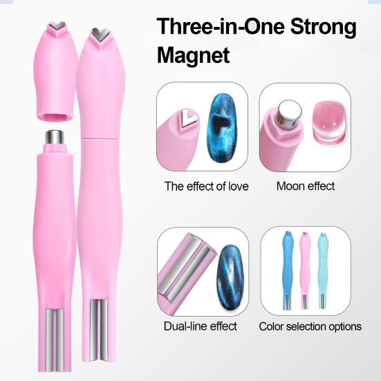 Konstrukcja trzy w jednym tego pisaka zawiera magnes do zdobienia paznokci Heart Round Linear, który zapewnia wygodny chwyt dla precyzyjnej kontroli nad Twoimi kreacjami nail art.. Osiągnięcie efektu idealnych kocich oczu jest proste: nałóż lakier hybrydowy cat eyes, użyj magnesu w kształcie serca, aby stworzyć pożądany wzór, i utwardź pod lampą UV dla niesamowitych rezultatów w zaledwie 60 sekund.