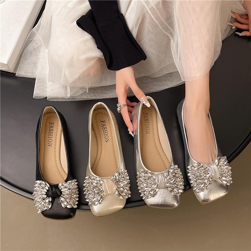 Doudou shoes women's new fashion bow single shoes soft sole one pedal small leather shoes