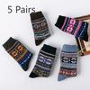 5 par skarpet zimowych, męskie pogrubione skarpety z wełny króliczej, etniczne skarpety tubowe i skarpety damskie