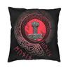 Runiczne Wikingowie Thor Mjolnir Poszewki na Poduszki Miękkie Nordyckie Valhalla Odin Poszewka na Poduszkę do Sofy Samochodu Kwadratowa Poszewka 45cm 18Cali