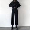 Damskie czarne, szerokie jeansy z wysokim stanem i skróconą nogawką - w małym koreańskim stylu, zakrywające biodra i wyszczuplające.