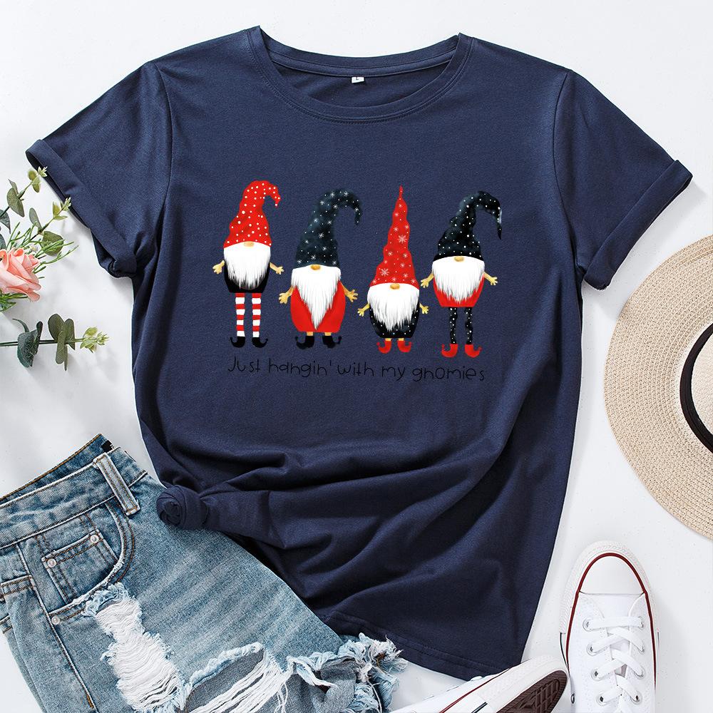 Świąteczny bawełniany T-shirt z krótkim rękawem i okrągłym dekoltem dla kobiet z nadrukiem 2D