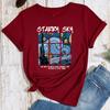 Bawełniany T-shirt Krótki Rękaw Okrągły Dekolt Damski Nadruk 2D Top