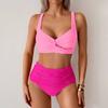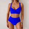 2025 Seksowny Niebieski Strój Kąpielowy na Ramiączkach Kobiety Zestaw Bikini z Wysokim Stanem Brazylijski Strój Kąpielowy Damski Krzyżowy Push Up Plażowy Strój Kąpielowy