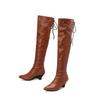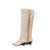 Różowo-brązowe damskie kozaki za kolano dziwne wysokie obcasy duży rozmiar 48