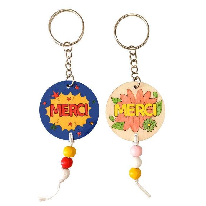 Porte-clés MERCI en bois 15cm 2 pièces