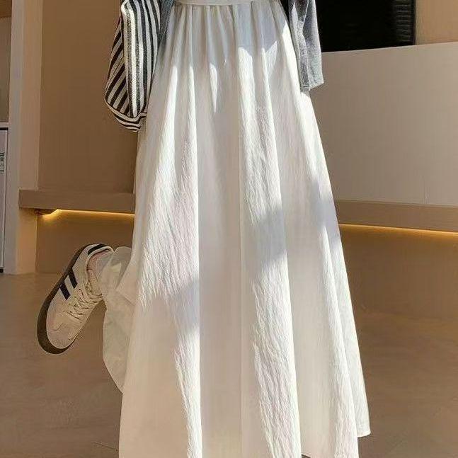 Damska Spódnica Midi z Wysokim Stanem w Kolorze Francuskiej Bieli - Letnia Plisowana A-Line