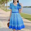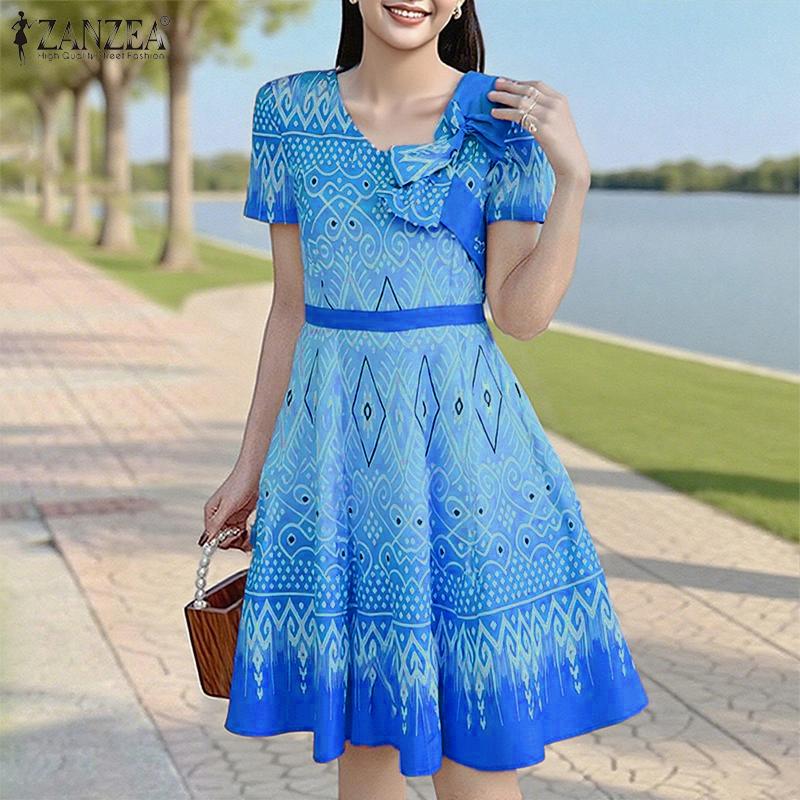 ZANZEA Kobiety Casualowy Letni Sukienka z Krótkim Rękawem i Nadrukiem z Dekoltem w Serek