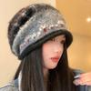 Autumn and winter hat women's cute flower headgear versatile face small pile hat ear protection warm knitted hat