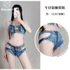 Sexy lingerie babes denim suspender set retro sexy bar three-point show bikini boobs