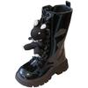 Girls Black Boots Glossy 2024 Side Zipper Children High Boots Bow Kids Versatile Casual Shoes for Catwalk Britain Style Non-slip