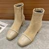 Koralikowe Grube Damskie Botki na Kostkę Zamszowe Średnie Obcasy Modne Buty Nowa Marka 2025 Trend Zima Projektanckie Czółenka Goth Chelsea Botas Mujer