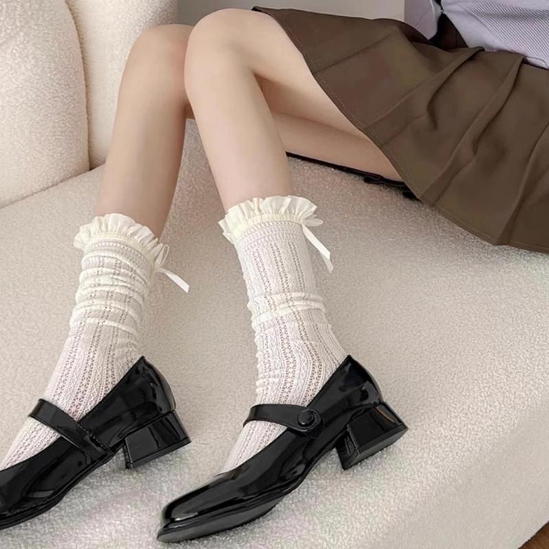 Słodkie i modne skarpetki w stylu baletowym z cienką kokardką i koronką, skarpetki warstwowe