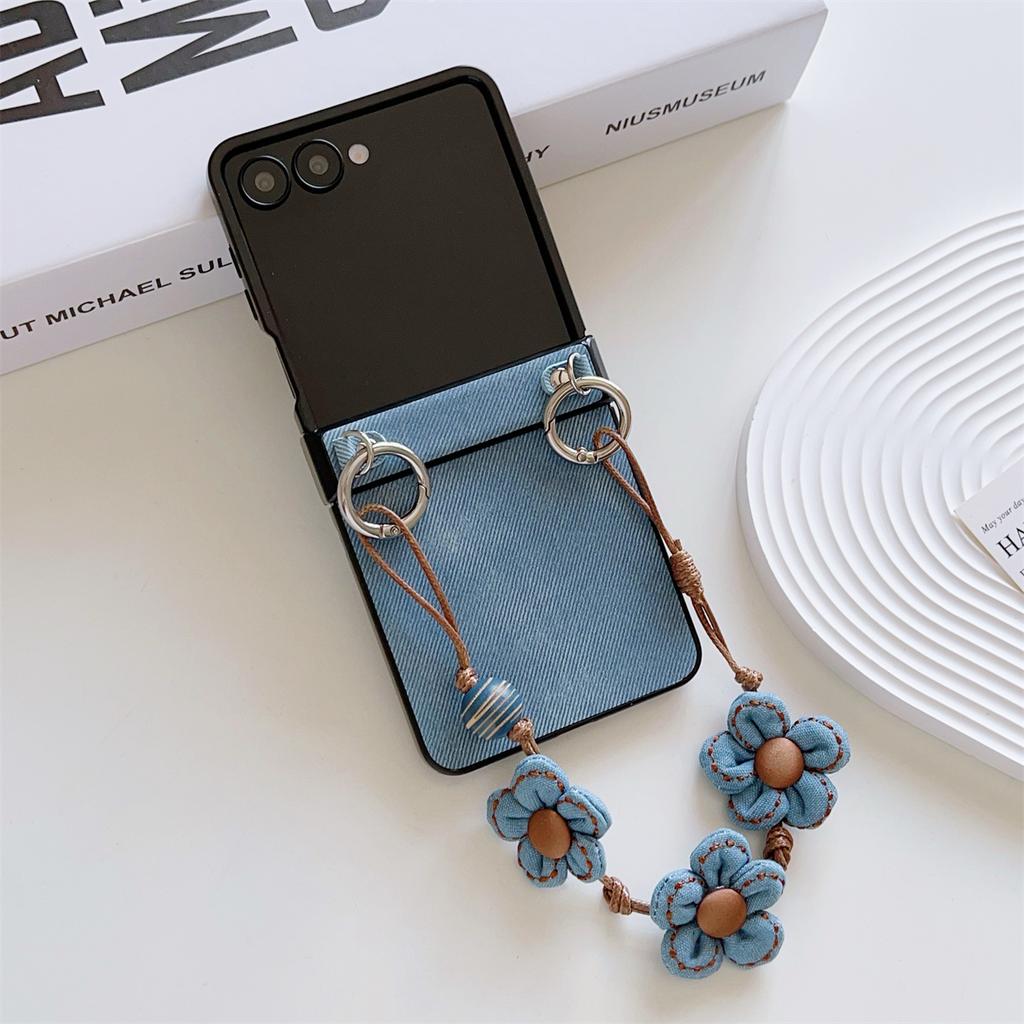 Etui na Samsung Galaxy Z Flip7 5G z teksturowanej tkaniny dżinsowej, pokrywa telefonu z TPU+PC z kwiatowym paskiem