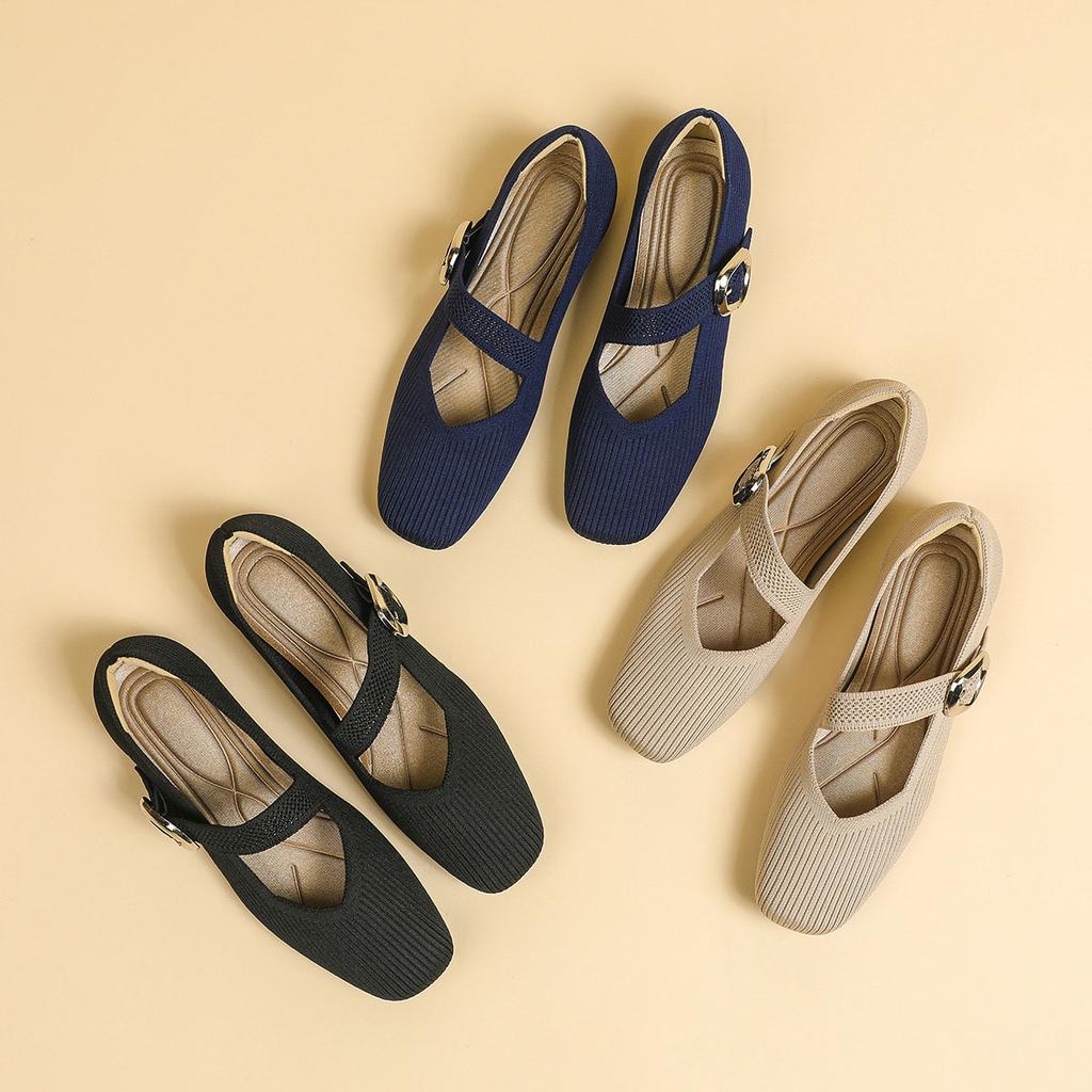 2025 Wiosna Dzianinowe Tkaniny Mary Jane Buty Kobiety Baleriny Buty Wygodne Miękkie Kwadratowy Nosek Płytkie Buty dla Kobiet