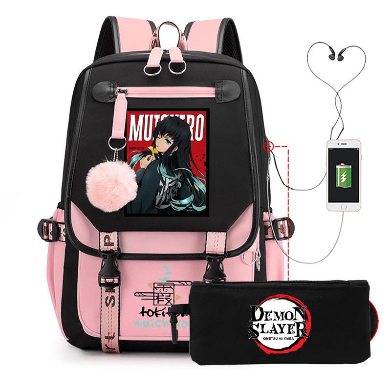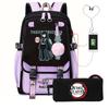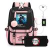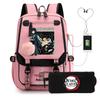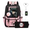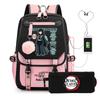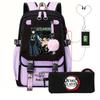 Casual Korean version schoolbag ghost extermination animation two-dimensional trend boys and girls USB backpack two-piece set