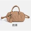 Luksusowa torebka bowlingowa ze skóry jagnięcej, haftowana nićmi, plisowana skóra, mała kwadratowa torebka, na jedno ramię, listonoszka, torebka damska