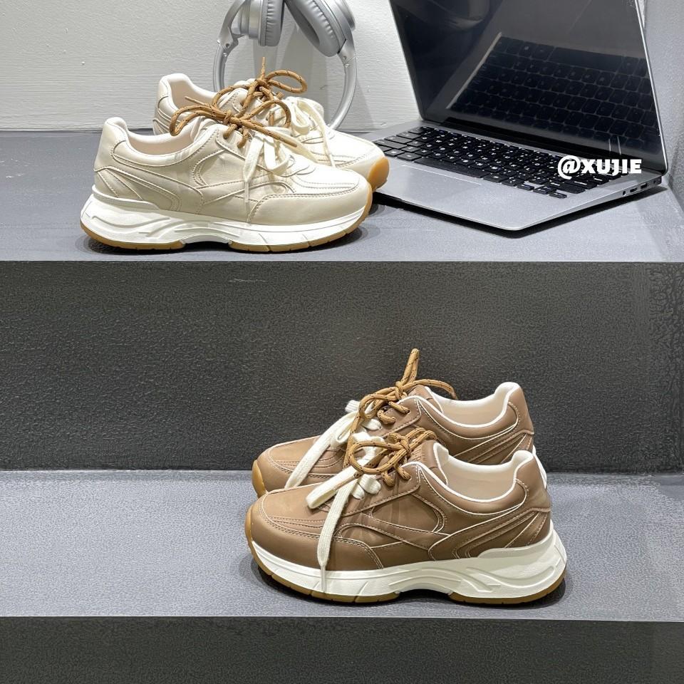 European Station 2025 Autumn New Leather Breathable Comfortable Casual Board Shoes Women's Versatile Forrest Gump Shoes Sneakers Daddy Shoes