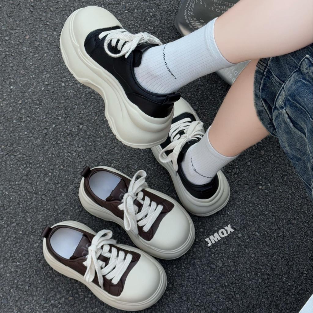 Little white board shoes white sneakers women's 2025 spring new platform little white shoes ugly cute big head bread shoes board shoes