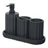 Gumowany Plastikowy Zestaw Akcesoriów Łazienkowych Prążkowany Pojemnik na Szczoteczki do Zębów Kosz na Śmieci Pompka do Mydła Tacka Organizer 4-częściowy Czarny Dekor