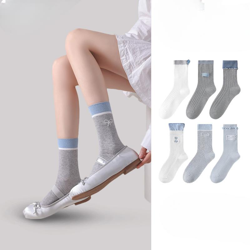 Female Autumn and Winter New Style Match Color Bow In Tube Socks