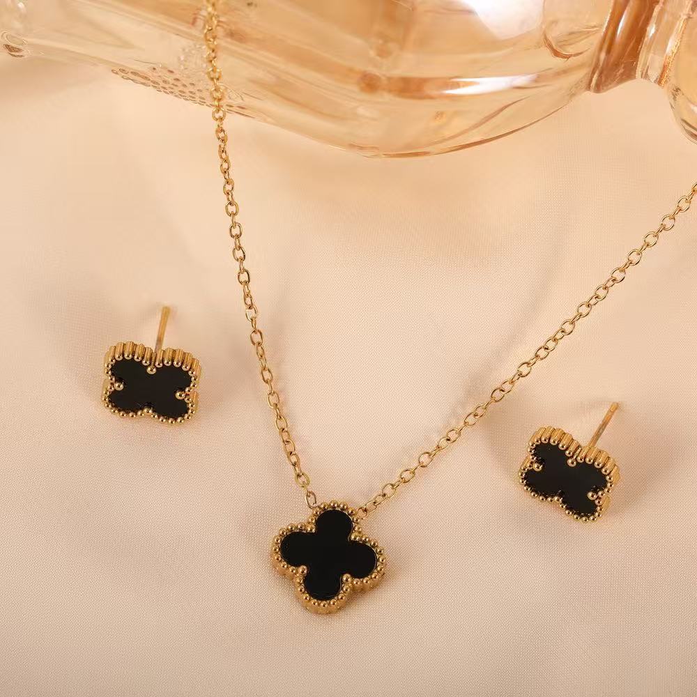 2 sztuki tytanowa stal nierdzewna dwustronny zestaw naszyjnik kolczyki koniczyna