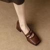 Moda Nowe Wiosenne Damskie Buty Skórzane Buty Mary Jane Kwadratowy Nosek Gruby Obcas Damskie Buty Retro Klamra Średni Obcas Czółenka