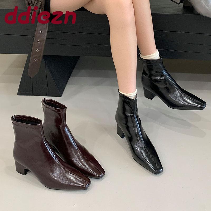 Fashion Fashion 3CM Heels Ladies Ankle Stretch Boots Female Zippers Shoes Modern Pointed Toe Women Short Boots Pumps Shoes