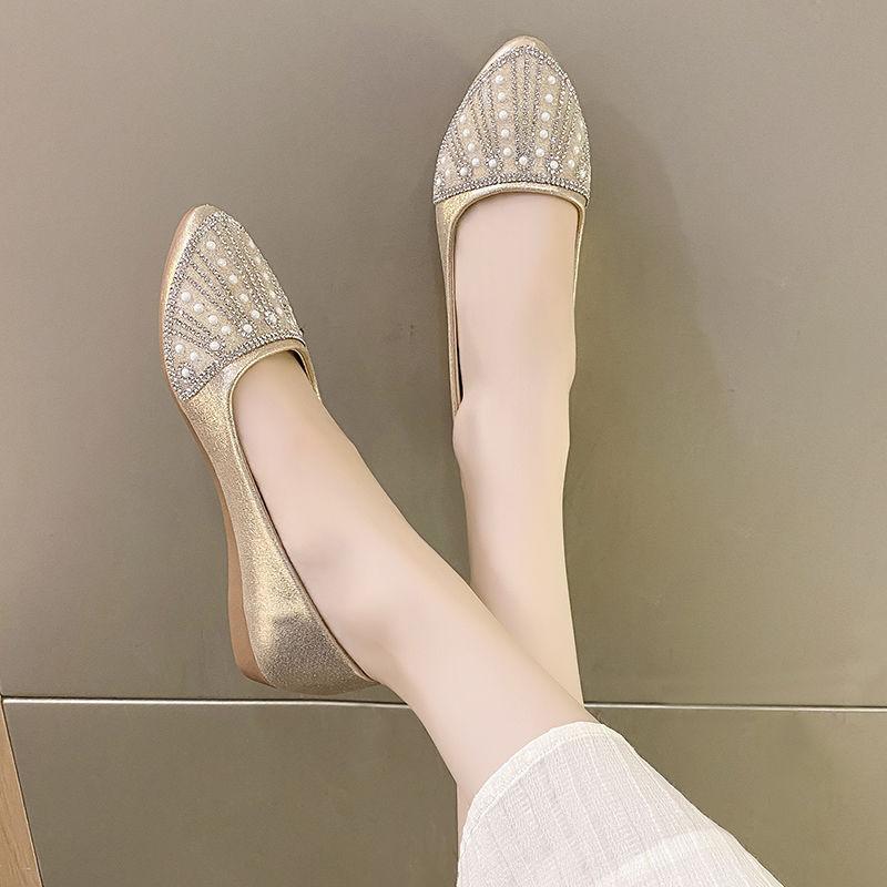 Modne buty damskie szpiczaste złote perły wsuwane damskie baleriny hurt 2025 lato stylowe buty w stylu koreańskim promocja niska cena