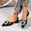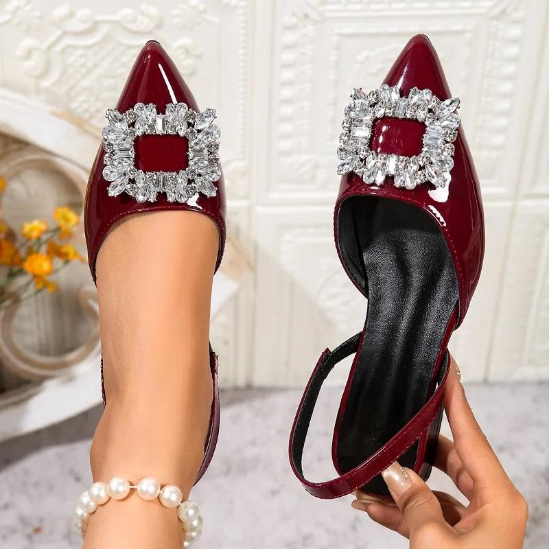 Fashion Black Heeled Sandals Clear Shoes 2025 Women's Black Rhinestone Medium Pointed Closed New Spring Gladiator Girls