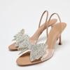 Modne Nowe 2025 Letnie Damskie Sandały Ozdobione Diamentową Kokardą Przezroczyste Odkryte Palce Wieczorne Party Ślubne Damskie Wysokie Obcasy Buty Damskie