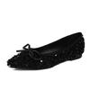 Fashion 2025 Spring Black Bling Women Flats Elegant Pointed Toe Footwear Classic Bowknot Shallow Slip-on Soft Sole Date Shoes for Lady