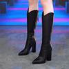 Fashion Black Pointed Toe Leather Elegant Heeled Long Boots for Women Autumn Winter Chic Designer Luxury Y2k Knee High Shaft Shoes Woman